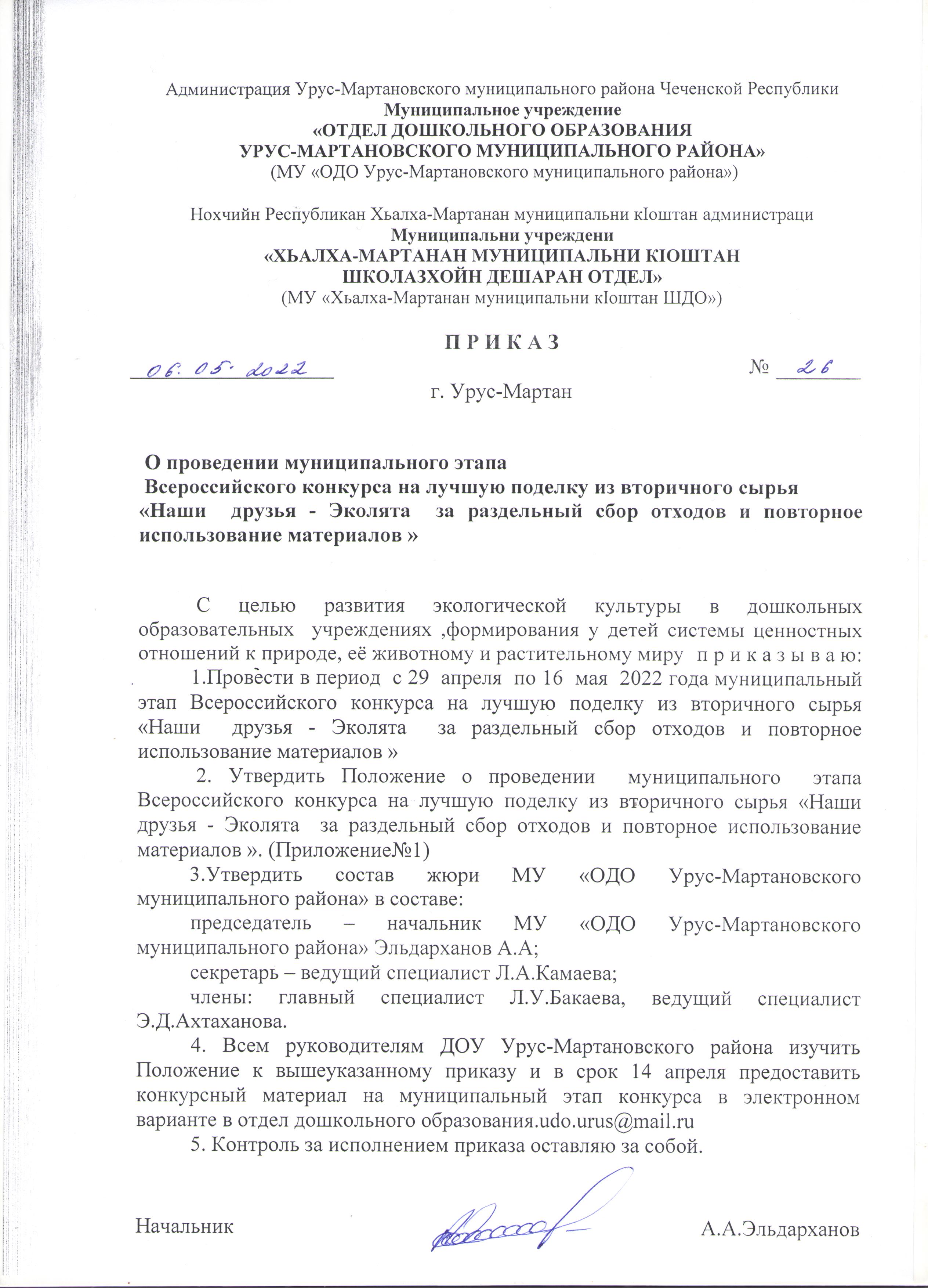 Приказ об организации и проведении мониторинга качества дошкольного образования в Урус-Мартановском муниципальном районе