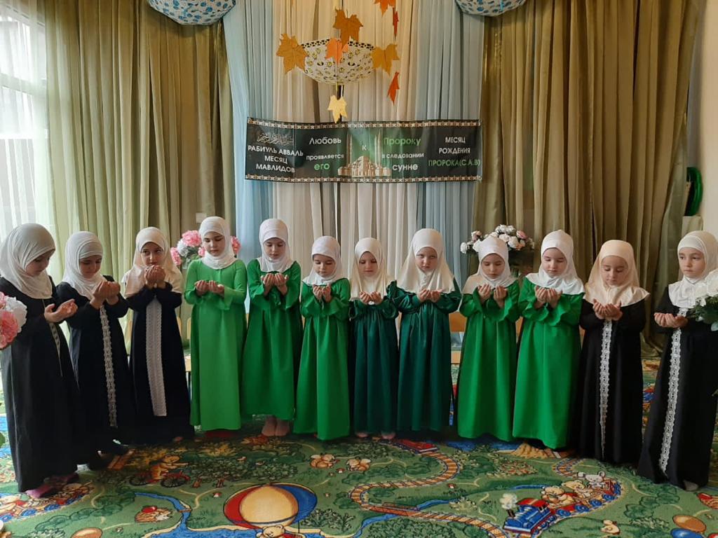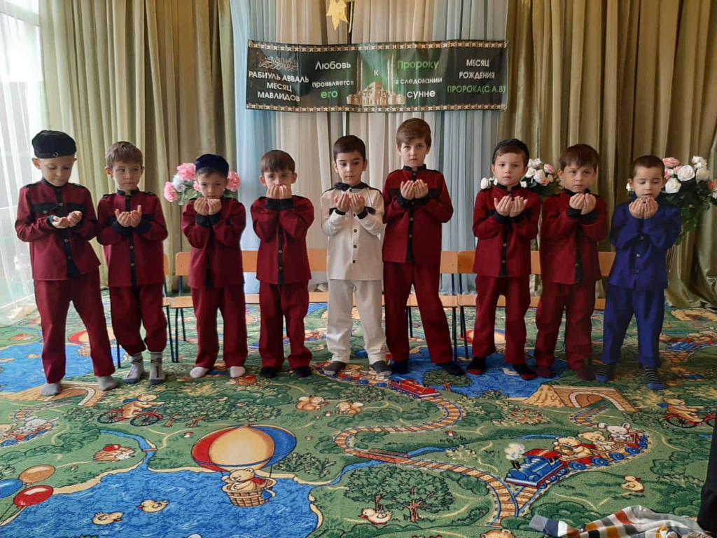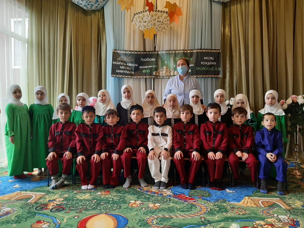 28.11.2020С воспитанниками старших и средних групп детского сада было проведено мероприятие (чтение мовлида) посвящённое «Дню рождения пророка Мухаммада» (да благословит его Аллах и приветствует).