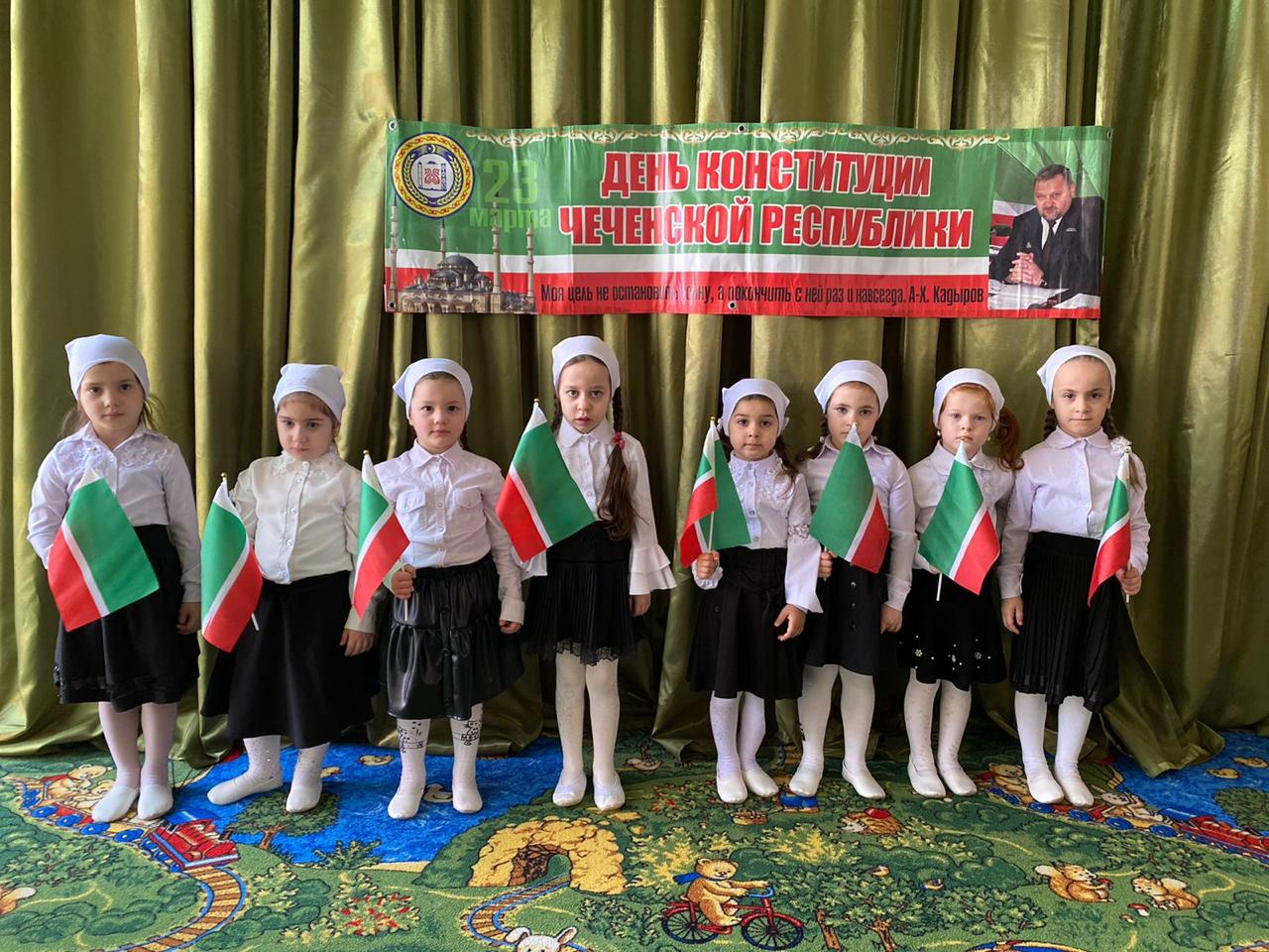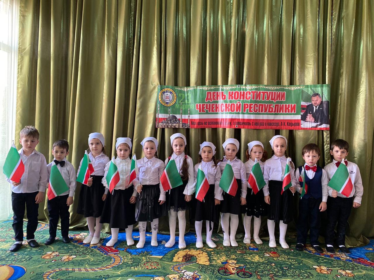 22 марта 2022г. во всех группах ДОУ провели тематические беседы «23 марта-День Конституции Чеченской Республики». Во всех группах ДОУ провели праздничное мероприятие. Мероприятие началось с исполнения гимна Чеченской Республики. воспитателями и воспитанниками. Дети читали стихи, исполнили песню «Сан Нохчичоь». Благодаря таким мероприятиям в детях воспитывается любовь, уважение и гордость к Родине и своему народу.