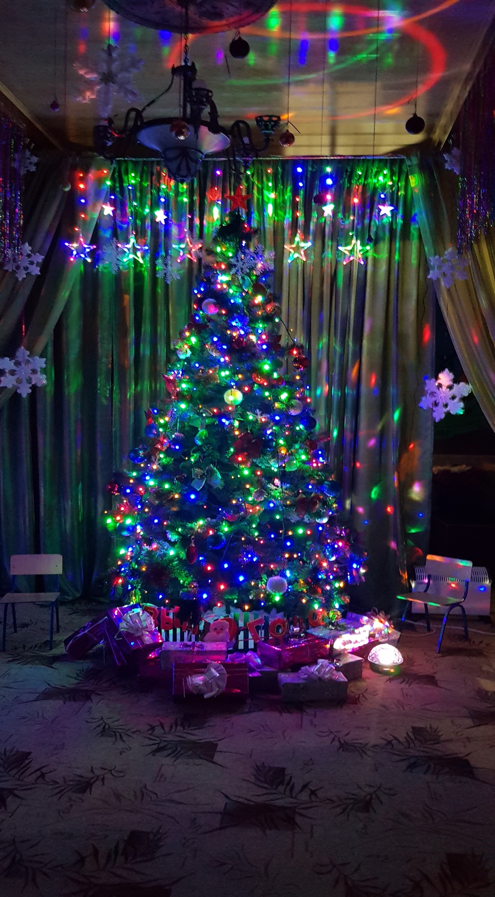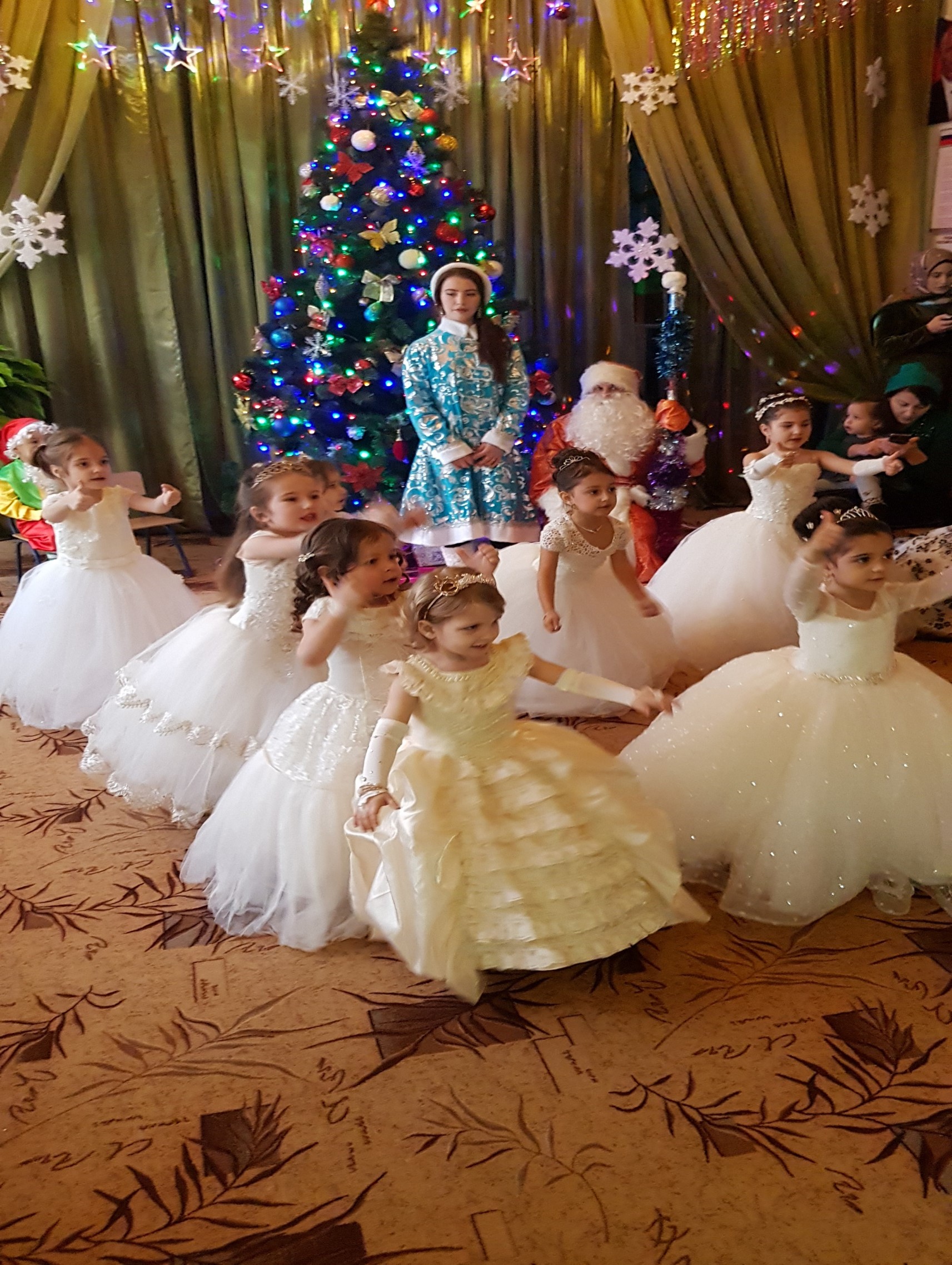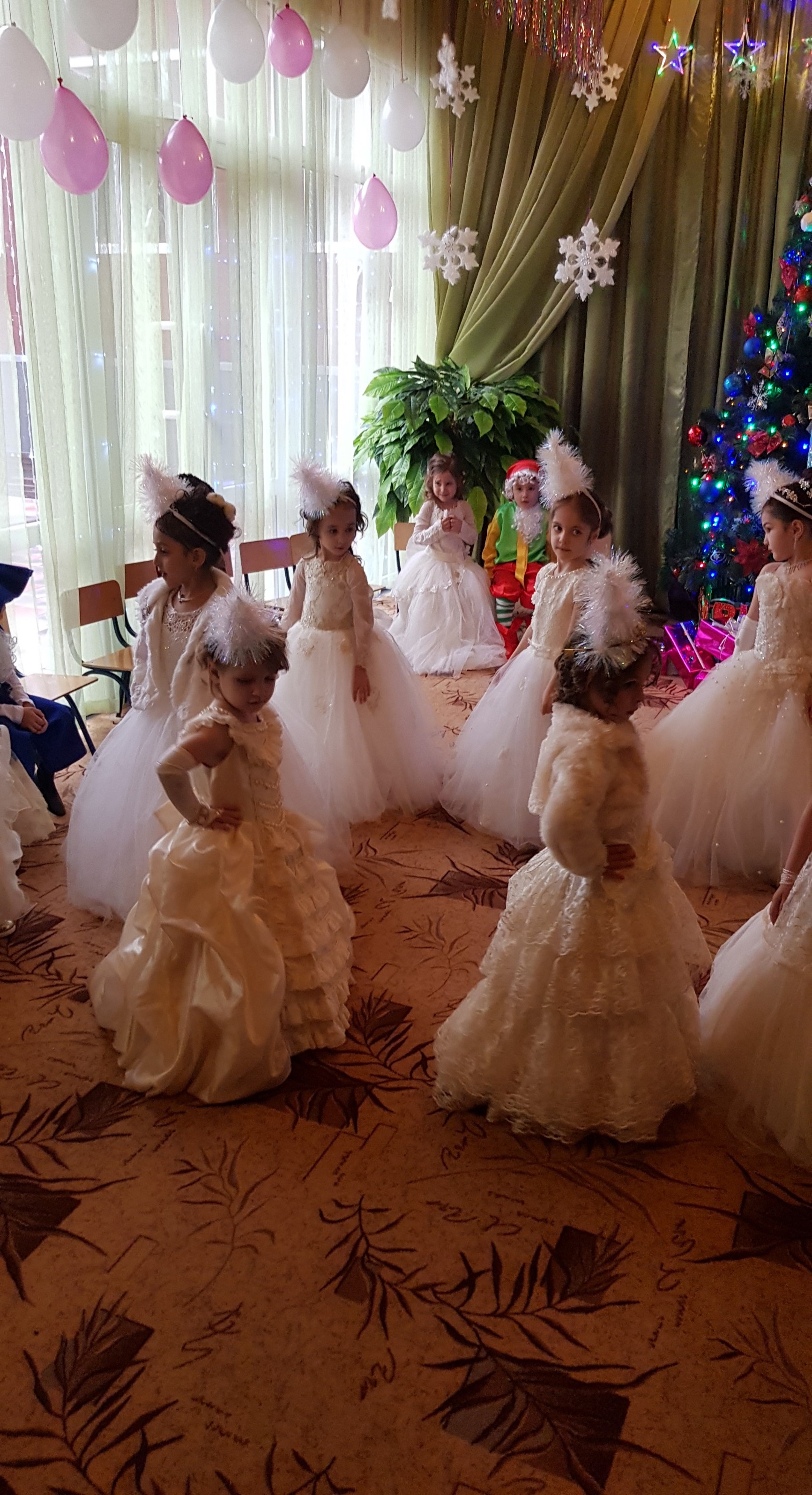 ками. В музыкальном зале стоит красавица-елка, сверкая гирляндами.