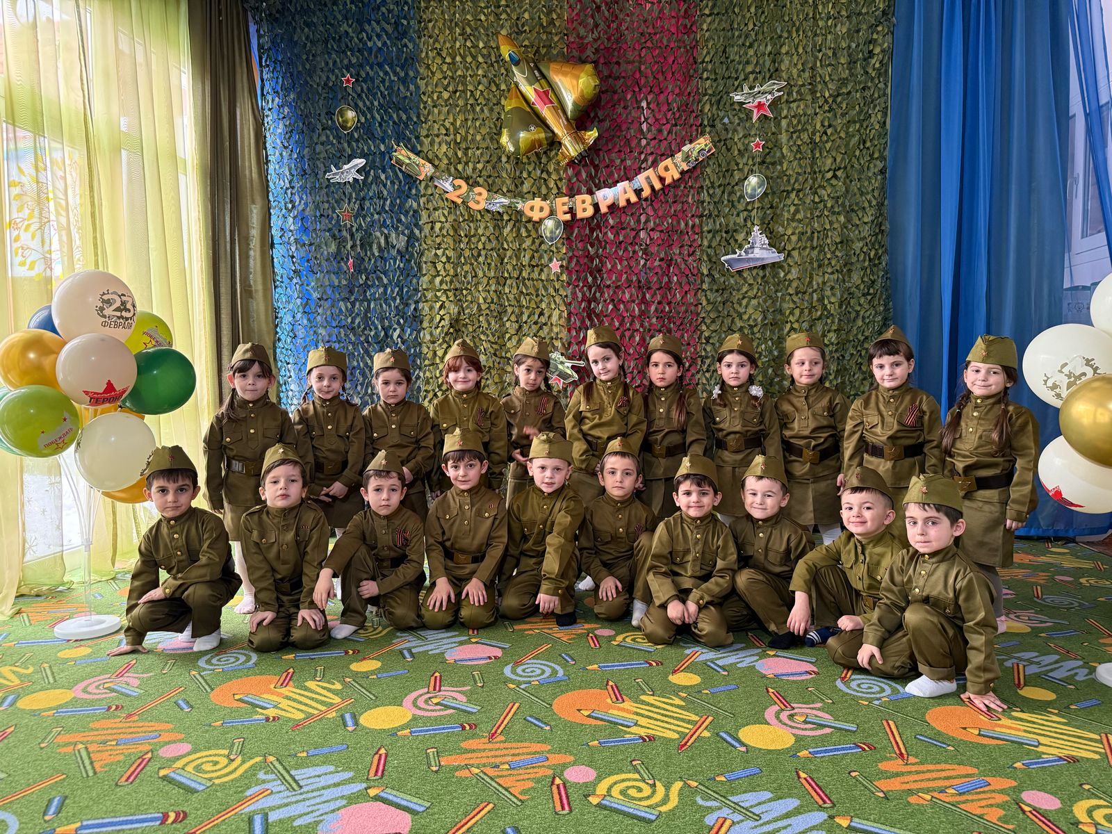 В нашем ДОУ была проведена работа по оформлению стендов и уголков «Защитник Отечества». С 17.02. по 20.02.2025г. провели тематические беседы, занятия (рисование, аппликация) приуроченные ко дню защитника во всех возрастных группах. Воспитатели групп подробно рассказывала детям о том, что такое армия, беседовали о том, кто такие защитники Отечества. В средней и в старшей группе была организована выставка детских рисунков приуроченных к празднованию Дня защитника Отечества. Цель проводимой выставки - показать талант и потенциал детей, приобщить к прекрасному и вовлечь их в творческий процесс, воспитывать патриотические чувства. 21 февраля провели утренник посвященный Дню защитника Отечества, где дети пели танцевали, читали стихотворения нашим Героям Отечества.