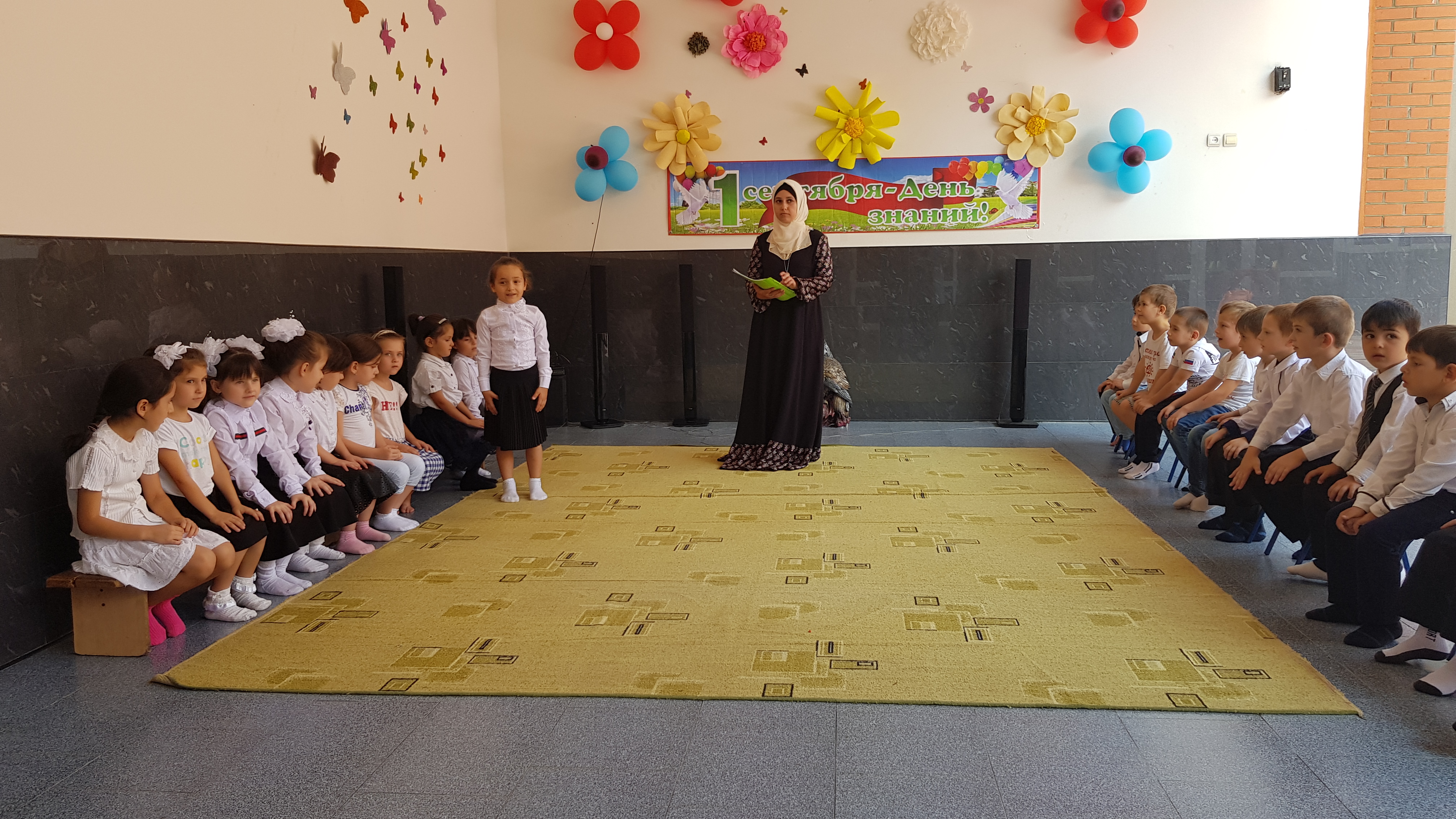 А 3 сентября 2018 г. в МБДОУ «Детский сад «Хадижа» с.Гехи» прошло мероприятие посвященное Дню знаний. По традиции педагоги приготовили праздничное представление с играми, танцами и разными сюрпризами: помогали любимому персонажу Мальвине перевоспитать Буратино, радовались хорошим поступкам, исправляли плохие.