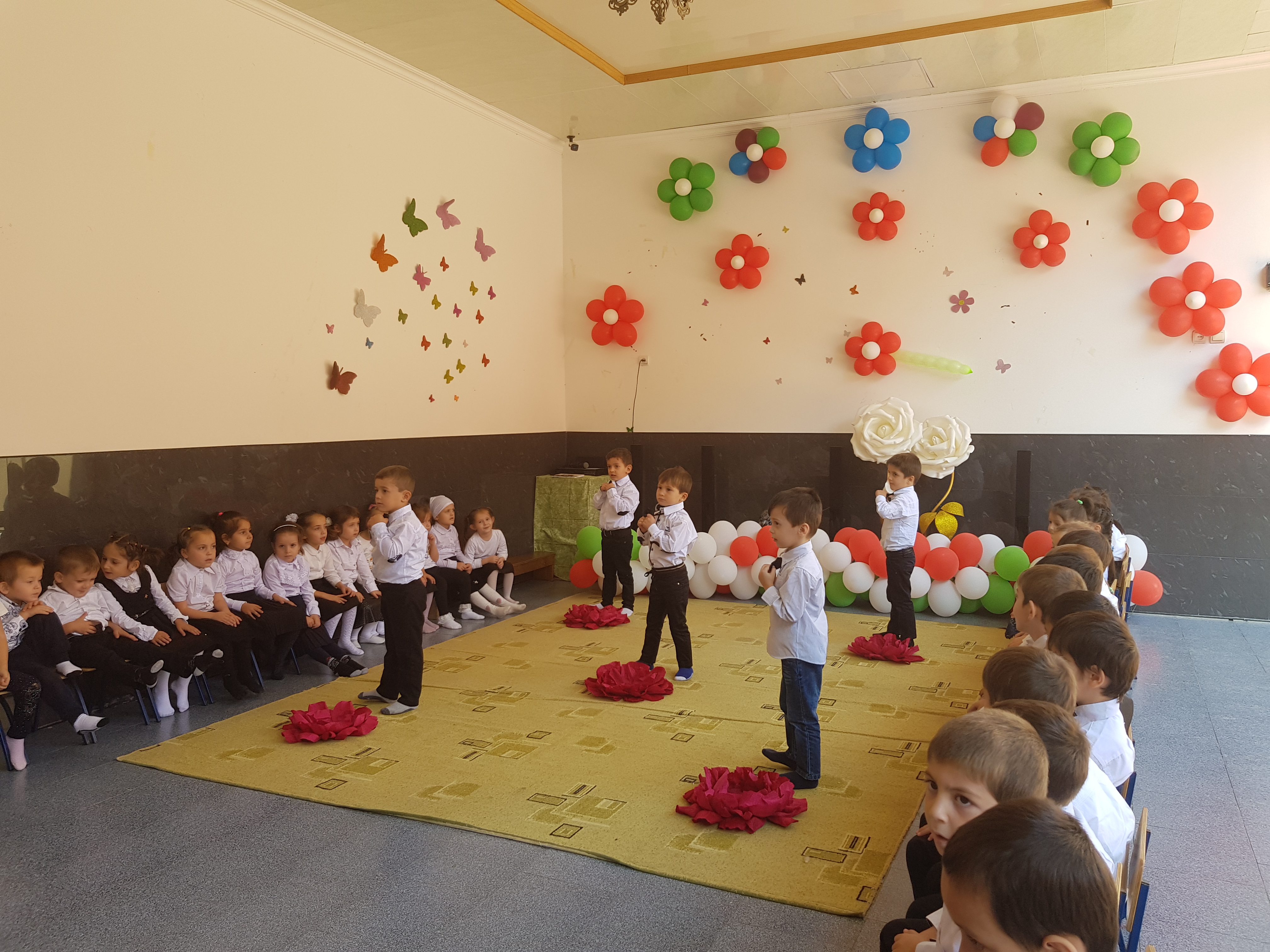 Дети очень нарядно одетые пели песни,танцевали, разыгрывали сценки. Показали, как они относятся к своим близким женщинам – маме, бабушке, сестрам и тётям. Они желали всем здоровья, успехов и счастья через песни, стихи и танцы.